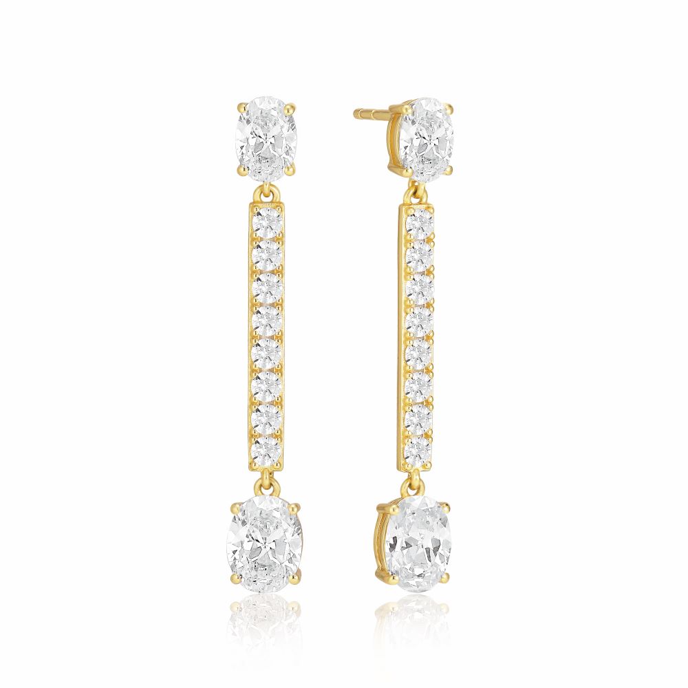 Ellisse Lungo - 18k Gullpläterade, med vita zirkoner Øreringer